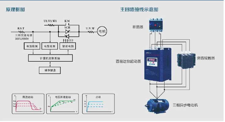起动方式 根据负载特点选(xuan)择(ze)不(bu)同的(de)起(qi)(qi)动模式及参数设置(zhi),可最大程度的(de)使电动机实现最佳的(de)起(qi)(qi)动效果。
